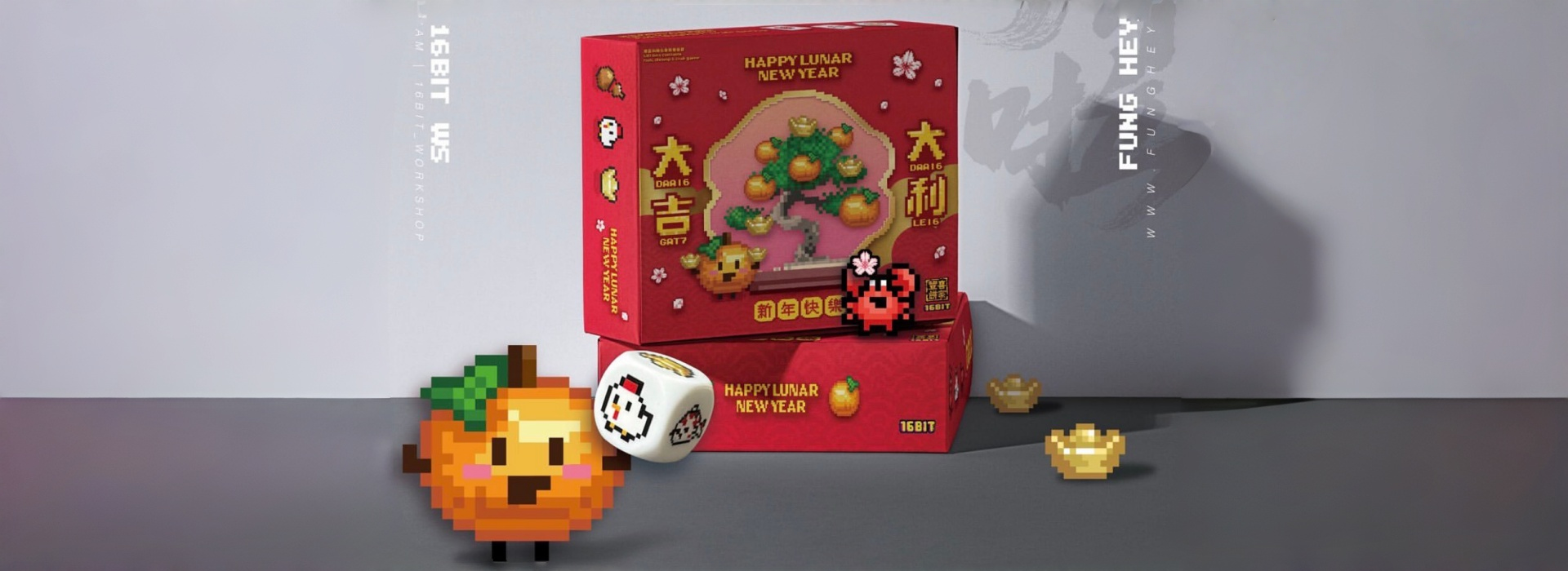 新春禮盒採用了折疊式天地蓋盒,利用摺紙作為間隔,整體實現無膠化環保包裝。趣緻的像素風設計,局部做了UV處理,突出品牌標誌,營造出多層質感與細節的把控。在提供食品本身的同時,也附上了遊戲‘魚蝦蟹’的遊戲配件從而增添品牌趣味性,送禮之餘還能和親戚朋友一起邊享用餅乾邊玩遊戲。